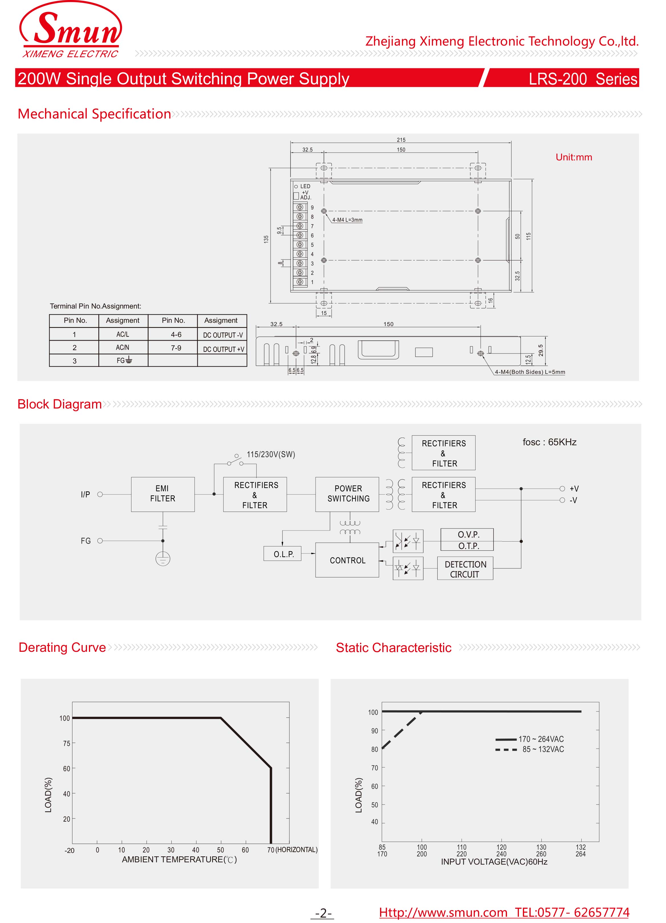 A série LRS-200 é uma fonte de alimentação do tipo fechado de saída única de 200 W com 30 mm de design de perfil baixo. Adotando a entrada de 115 V CA ou 230 V CA (selecionável por chave), toda a série fornece uma linha de tensão de saída de 12 V, 15 V, 24 V, 36 V e 48V.
